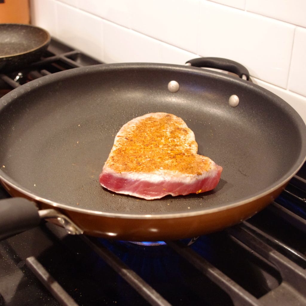 Ahi tuna is so flavorful on its own that you hardly. Use a very sharp (serrated works well) knife to slice thinly across the grain. Even better, it's one of the quickest things you can cook. (if your tuna is less than 1 1/2 inches thick, sear for only 1 minute per side.) transfer seared ahi to a large cutting board and let rest/cool 10 minutes. There's nothing fishy about this tuna.